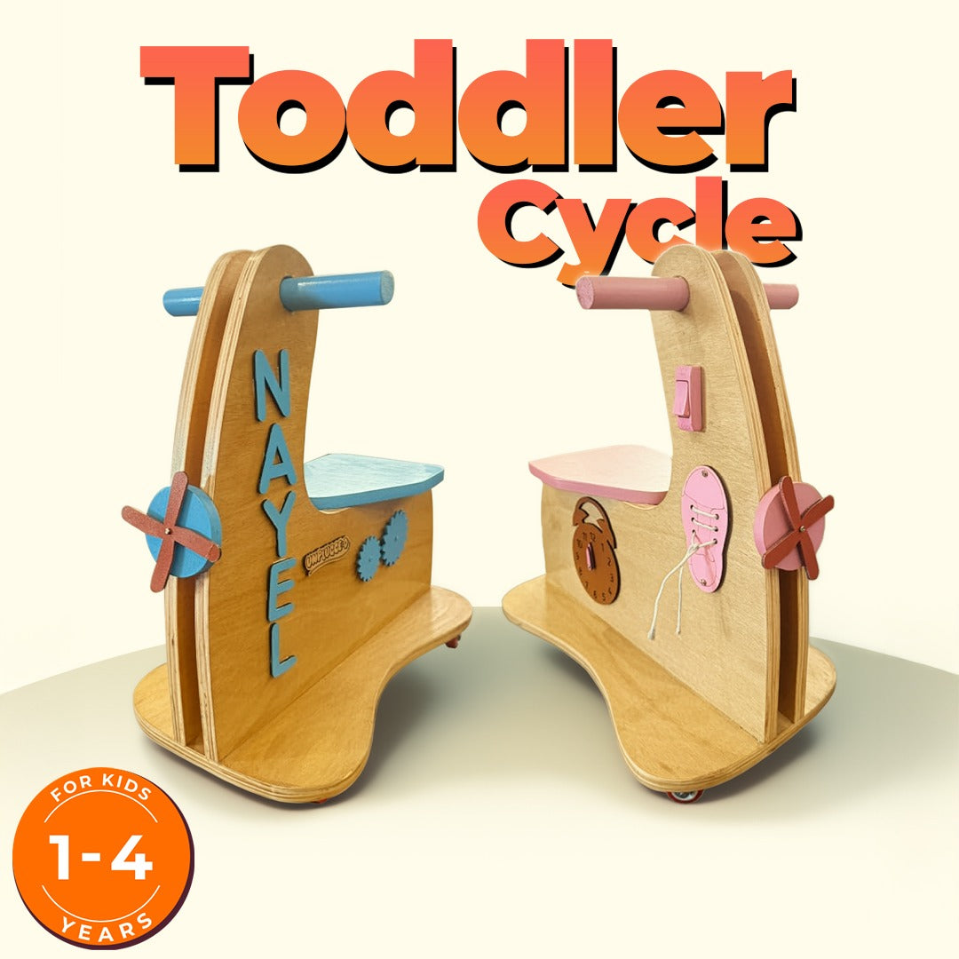 - Walker + Ride-On Cycle – Supports early walking, balance, and confidence on wheels.