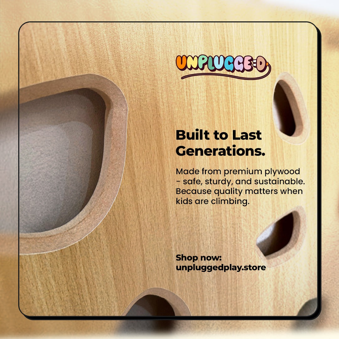 - 🪵 Durable plywood with rounded edges for safe climbing